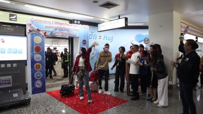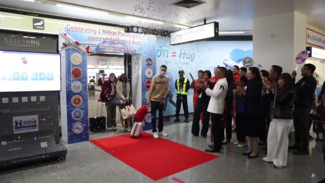 สนามบินคึกคักส่งท้ายปี อุดรแตกแล้ว สนามบินนานาชาติ จ.อุดรธานี รับนักท่องเที่ยวลำดับที่ 2 ล้านสร้างสถิติใหม่ ผู้ว่านำทีมต้อนรับสุดอบอุ่น