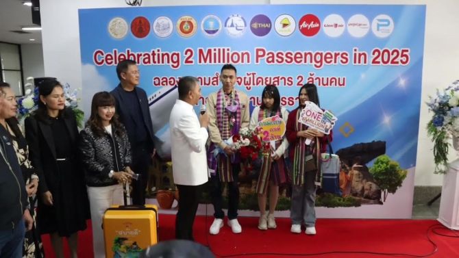 วันนี้ (30 ธ.ค.68) เวลา 11.30 น. ที่ท่าอากาศยานนานาชาติอุดรธานี จังหวัดอุดรธานี ได้จัดกิจกรรมต้อนรับนักท่องเที่ยวคนที่ 2 ล้านของจังหวัดอุดรธานี ท่ามกลางบรรยากาศอบอุ่นและคึกคัก โดยมีนายราชันย์ ซุ้นหั้ว ผู้ว่าราชการจังหวัดอุดรธานี นายศราวุธ เพชรพนมพร นายกอบจ.อุดรธานี, ผู้อำนวยการท่าอากาศยานอุดรธานี, ผู้แทนการท่องเที่ยวแห่งประเทศไทย ท่องเที่ยวและกีฬาจังหวัดอุดรธานี เจ้าหน้าที่ตำรวจ สภ.เมืองอุดรธานี รวมถึงประชาชนร่วมให้การต้อนรับ