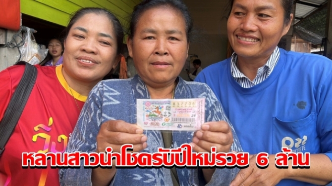 - หลานสาวนำโชครับปีใหม่! ป้าชาวนครพนม ถูกรางวัลที่ 1 รวย 6 ล้าน หลาน 3 ขวบดึงจากแผงวิ่งไปให้ซื้อ 2 ม.ค. 2569