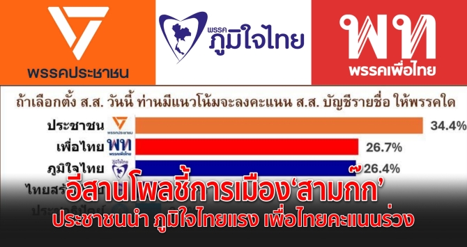 อีสานโพลชี้การเมือง “สามก๊ก” พรรคประชาชนนำ ภูมิใจไทยแรง เพื่อไทยคะแนนร่วง