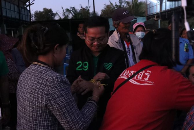 ทั้งนี้ในช่วงท้าย ชาวบ้านได้พากันผูกมือสู่ขวัญนพ.วรงค์ เพื่อให้กำลังใจและอวยพรให้ได้เข้าสภา