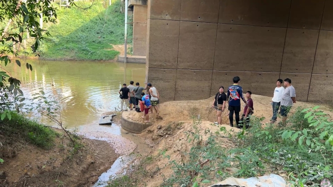 ที่เกิดเหตุพบรถจักรยานยนต์ฮอนด้า เวฟ สีเทาดำ หมายเลขทะเบียนสุรินทร์ จอดอยู่บริเวณหัวสะพานขาว คาดว่าเป็นของผู้ก่อเหตุ พร้อมยืนยันว่ามีผู้กระโดดสะพานลงไปในลำห้วยสำราญจริง จากนั้นได้ประสานขอกำลังเจ้าหน้าที่กู้ภัยจากมูลนิธิสว่างจิตต์ศรีสะเกษธรรมสถาน และเทศบาลเมืองศรีสะเกษ นำนักประดาน้ำลงค้นหาใต้น้ำบริเวณใต้สะพานขาว ซึ่งวัดระยะจากราวสะพานถึงผิวน้ำสูงประมาณ 15 เมตร โดยระดับน้ำมีความลึกราว 4 เมตร