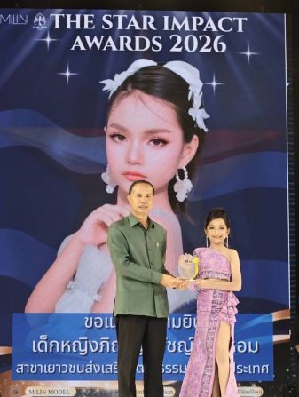 เด็กไทยหัวใจวัฒนธรรม ด.ญ.ภิญญาพัชญ์ จันหอม หรือ “น้องแบมแบม” นักเรียนชั้นประถมศึกษาปีที่ 4/4 โรงเรียนสนามบิน จังหวัดขอนแก่น คว้ารางวัล The Star Impact Awards 2026 สาขาเยาวชนส่งเสริมวัฒนธรรมระหว่างประเทศ จากเวทีมหกรรมวัฒนธรรม “กรุงแก่น” ท่ามกลางแขกผู้มีเกียรติจากหลายประเทศ