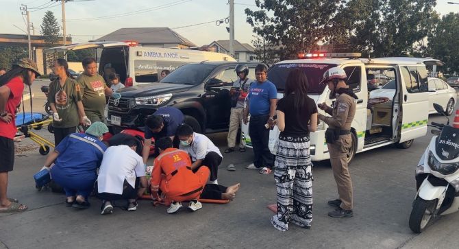 เมื่อเวลา 17.00 น. วันที่ 28 มกราคม 2569 พนักงานสอบสวน สภ.ชัยพฤกษ์ จังหวัดนนทบุรี พร้อมเจ้าหน้าที่กู้ชีพโรงพยาบาลปากเกร็ด และอาสาสมัครมูลนิธิร่วมกตัญญู เข้าตรวจสอบอุบัติเหตุรถกระบะชนรถจักรยานยนต์ มีผู้ได้รับบาดเจ็บสาหัส เหตุเกิดบริเวณหน้าหมู่บ้านบางกอกบูเลอวาร์ด แจ้งวัฒนะ 2 ถนนหอการค้า ตำบลบางตะไนย์ อำเภอปากเกร็ด