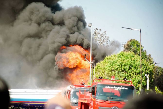 ทันทีที่เกิดเหตุ มีเสียงระเบิดดังขึ้นต่อเนื่อง ก่อนเปลวไฟจะลุกโหมอย่างรุนแรง เผาผลาญรถบรรทุกน้ำมันที่จอดอยู่ในบริเวณดังกล่าว ทำให้รถเสียหายทั้งคัน 3 คัน และเสียหายบางส่วนอีก 2 คัน กลุ่มควันดำหนาทึบพวยพุ่งขึ้นสู่ท้องฟ้า สามารถมองเห็นได้จากระยะไกล สร้างความตื่นตระหนกให้กับประชาชนในละแวกใกล้เคียง