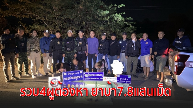 กกล.สุรนารีผนึกตำรวจเขมราฐ สกัดขบวนการค้ายา รวบ 4 ผู้ต้องหา ยาบ้า 7.8 แสนเม็ด