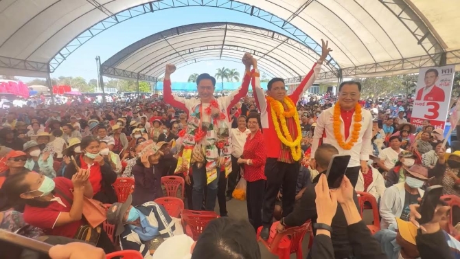 “ยศชนัน” นำเพื่อไทยลุยสุรินทร์ เวทีเดือดคนร่วมฟังแน่น