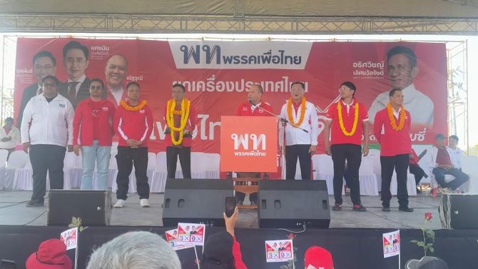 นายณัฐวุฒิ ใสยเกื้อ ผู้ช่วยหาเสียงพรรคเพื่อไทย ขึ้นเวทีปราศรัยกล่าวถึงบรรยากาศการเลือกตั้งช่วงโค้งสุดท้ายที่เข้มข้น พร้อมย้ำถึงผลงานและนโยบายของพรรคที่พร้อมสานต่อทันทีหากได้รับความไว้วางใจจากประชาชน โดยระบุว่าการแข่งขันทางการเมืองขณะนี้ถูกจับตามองว่าเป็นการขับเคี่ยวระหว่างสองขั้วหลัก และพรรคเพื่อไทยต้องการทุกคะแนนเสียงเพื่อจัดตั้งรัฐบาล