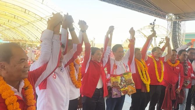 สุรินทร์ – วันที่ 4 กุมภาพันธ์ 2569 พรรคเพื่อไทยเปิดเวทีปราศรัยใหญ่ที่ลานโรงสีสชัยเจริญ ตำบลปรือ อำเภอปราสาท จังหวัดสุรินทร์ โดยมีนายยศชนัน วงศ์สวัสดิ์ หรือ “อ.เชน” แคนดิเดตนายกรัฐมนตรีพรรคเพื่อไทย นำทีมแกนนำพรรคลงพื้นที่ช่วยผู้สมัคร สส. และแนะนำผู้สมัครครบทั้ง 8 เขต ท่ามกลางบรรยากาศคึกคัก มีประชาชนเข้าร่วมรับฟังกว่า 3 หมื่นคน