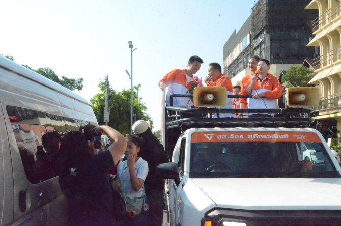 เขต 2.ตัวเต็งหนึ่ง พรรคประชาชน มีนายปิยชาติ รุจิพรวสิน อดีต ส.ส.แชมป์เก่า ยังใช้กลเม็ดเกาะแสพรรค เกาะกระแสเดินหาเสียงกับ“ เท้ง..ณัฐพงษ์ เรืองปัญญาวุฒิ”แบบเงาตามตัว ตลาตลาดสดมีแฟนคลับ FC กลุ่มเยาวชนคนรุ่นใหม่ แต่ก็ยังมีคำถามและฝากปัญหาให้แก้ไขตามมา อาทิ เรื่องทหาร เรื่อง 112 ทำให้เกิดเสียงที่ดรอปลงไปบ้าง และยังมีเสียงจากแรงงานกลุ่มโรงงานเขตอุตสาหกรรม, ขณะที่พรรคเพื่อไทยโดยพรรคเพื่อไทย เขตนี้ “นายวัชรพล โตมรศักดิ์” อดีต ส.ส.หลายสมัย เร่งลงพื้นที่เข้าหาฐานเสียงในพื้นที่อย่างขมักเขม่น เร่งสปีคเดินเคาะประตูบ้าน แถมใช้โซเชี่ยวฯโปรโมทตัวเอง ผลงาน นโยบายตัวเอง นโยบายพรรค และยังได้ขวัญกำลังใจ โดย น.ส.สุดาวรรณ หวังศุภกิจโกศล, นายประเสริฐ จันทรรวงทอง กราบไหว้สักการะคุณย่าโม และศาลเจ้าหลักเมืองขอพรให้ประสบผลสำเร็จ