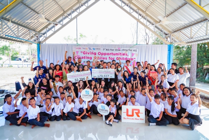 เมื่อวันที่ 7 ก.พ.69 มหาวิทยาลัยนานาชาติแสตมฟอร์ด สโมสรโรทาแรคท์มหาวิทยาลัยนานาชาติแสตมฟอร์ด และสโมสรโรตารีรอยัลหัวหิน ดำเนินโครงการจิตอาสา “ส่งโอกาสให้น้อง (Passing on Opportunities to Underprivileged Children)” พร้อมนำรายได้ของสโมสรโรทาแรคท์มหาวิทยาลัยนานาชาติแสตมฟอร์ดจากการจัดงาน “ราตรีนานาชาติการกุศล (International Charity Night 2026)” ไปมอบให้โรงเรียนบ้านหนองกระทิง อ.กุยบุรี จ.ประจวบฯ โดยมี ดร.ยุนหลิน หยาง ผู้อำนวยการบริหาร มหาวิทยาลัยนานาชาติแสตมฟอร์ด วิทยาเขตหัวหิน–ชะอำ ดร.เรวิตา สายสุด หัวหน้าหลักสูตรบริหารธุรกิจมหาบัณฑิต MBA นางสาวพิชยา สุวรรณโชติ นายกสโมสรโรทาแรคท์มหาวิทยาลัยนานาชาติแสตมฟอร์ด นายไบรอัน แอนเดอร์สัน นายกสโมสรโรตารีรอยัลหัวหิน นายศิริชัย บุญเพ็ง รักษาการผู้อำนวยการโรงเรียนบ้านหนองกระทิง คณะครูและนักเรียนร่วมกิจกรรม