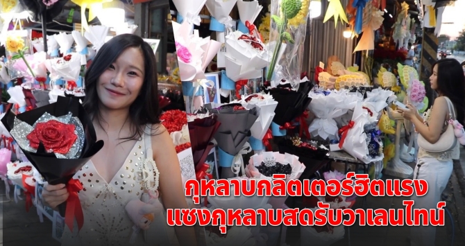 กระแสโซเชียลมีเดียส่งผลให้ “ช่อดอกกุหลาบกลิตเตอร์” กลายเป็นของขวัญยอดนิยมในช่วงเทศกาลวันวาเลนไทน์ปีนี้ แซงหน้ากุหลาบสดอย่างเห็นได้ชัด ร้านดอกไม้ในจังหวัดบุรีรัมย์เร่งผลิตออเดอร์แทบไม่ทัน ขณะที่ยอดสั่งจองผ่านช่องทางออนไลน์เพิ่มขึ้นต่อเนื่อง