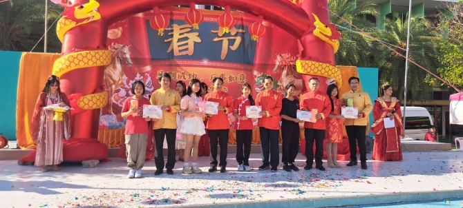 โรงเรียนสนามบินจังหวัดขอนแก่น จัดกิจกรรมวันตรุษจีน ประจำปี 2569 อย่างยิ่งใหญ่อลังการ เนรมิตพื้นที่หน้าเสาธงเป็นเวทีวัฒนธรรมจีนสุดตระการตา พร้อมแขกผู้มีเกียรติจากสถานกงสุลใหญ่จีนร่วมงาน ท่ามกลางบรรยากาศแห่งความสุข ความเป็นสิริมงคล และความร่วมมือทางการศึกษาไทย–จีน