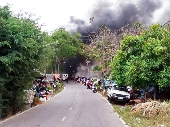 ในที่เกิดเหตุเป็นอู่ต่อเรือหลังคาเมทัลชีทขนาดใหญ่ พบเพลิงกำลังลุกไหม้อย่างรุนแรงภายในอู่ จนโครงหลังคาทรุดตัวลงมา กลุ่มควันดำหนาทึบพวยพุ่งขึ้นสู่ท้องฟ้ามองเห็นได้ไกลกว่า 1 กิโลเมตร ท่ามกลางความแตกตื่นของชาวบ้านในพื้นที่