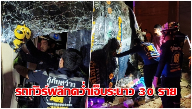 หวิดโศกนาฏกรรม! รถทัวร์ภูเก็ต–เบตงเสียหลักพลิกคว่ำ เจ็บระนาว 30 ราย คนขับขาซ้ายขาด