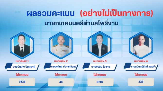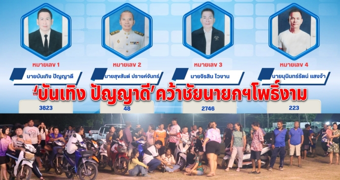 เลือกตั้งโพธิ์งามไม่เป็นทางการ “บันเทิง ปัญญาดี” คะแนนนำ คว้าชัยนายกฯ