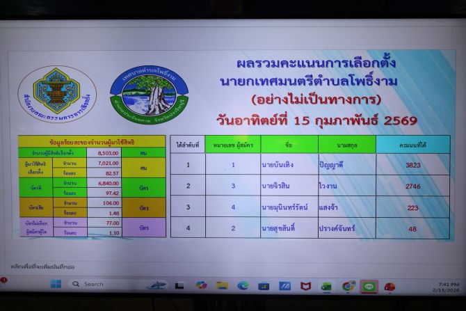 - เลือกตั้งโพธิ์งามไม่เป็นทางการ “บันเทิง ปัญญาดี” คะแนนนำ คว้าชัยนายกฯ 16 ก.พ. 2569