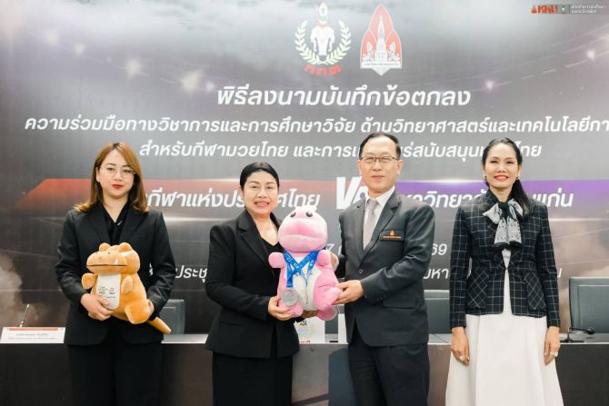 มหาวิทยาลัยขอนแก่น ผนึกกำลัง การกีฬาแห่งประเทศไทย ลงนามบันทึกข้อตกลงความร่วมมือทางวิชาการและการวิจัย นำองค์ความรู้ด้านวิทยาศาสตร์การกีฬา เทคโนโลยี และนวัตกรรม มายกระดับศักยภาพ “มวยไทย” ซึ่งเป็นมรดกทางวัฒนธรรมและ Soft Power ของชาติ ให้ก้าวสู่เวทีโลกอย่างเป็นรูปธรรม
