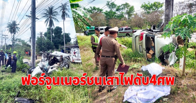 สลด! รถเสียหลักพุ่งชนเสาไฟฟ้า เสียชีวิต 4 ราย
