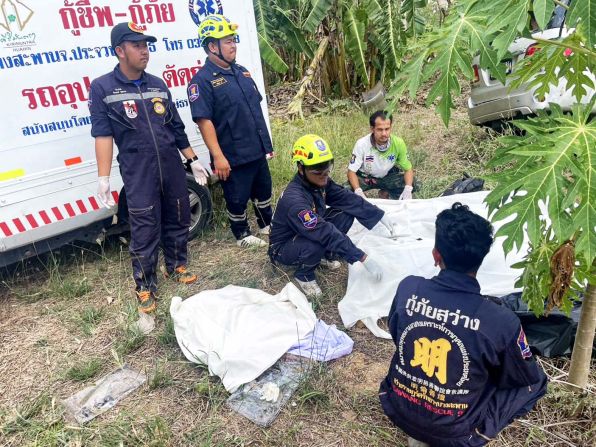 ที่เกิดเหตุพบรถยนต์เอนกประสงค์ ยี่ห้อโตโยต้า ฟอร์จูนเนอร์ สีบรอนซ์ทอง หมายเลขทะเบียน สย 6263 กรุงเทพมหานคร พลิกตะแคงอัดติดกับเสาไฟฟ้าข้างทาง สภาพรถได้รับความเสียหายอย่างรุนแรง ภายในพบผู้เสียชีวิตรวม 4 ราย ทราบชื่อคือ นางพรพรรณ (สงวนนามสกุล) อายุ 66 ปี นายวิทยา (สงวนนามสกุล) อายุ 67 ปี นายนิคม (สงวนนามสกุล) อายุ 70 ปี และเด็กชายธันย์ (สงวนนามสกุล) อายุ 2 ปี ทั้งหมดเป็นชาวจังหวัดนครศรีธรรมราช เจ้าหน้าที่นำร่างผู้เสียชีวิตส่งโรงพยาบาลบางสะพาน เพื่อให้แพทย์ตรวจยืนยันอีกครั้ง