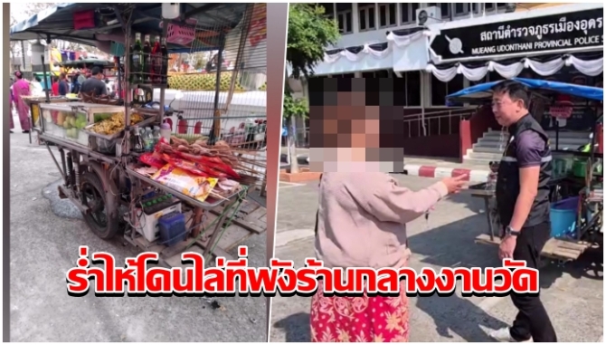 วันที่ 21 ก.พ.69 ที่สภ.เมืองอุดรธานี น.ส.แขก อายุ 59 ปี ชาวอ.เมือง จ.หนองบัวลำภู เข้าร้องขอความช่วยเหลือจากนายภาณุมาศ จิตรวศินกุล เพจ เฮียเปี๊ยกช่วยด้วย หลังถูกกลุ่มชายขาใหญ่ที่อ้างตัวรู้จักกับผช.ผู้ใหญ่บ้าน ให้ดูแลพื้นที่ภายในงานบุญเดือนสี่ที่วัดบ้านเชียงพิณ ต.เชียงพิณ อ.เมือง จ.อุดรธานี ที่มีคณะหมอลำดัง “อีสานนครศิลป์” แสดงและเกิดวุ่นวายขึ้นเมื่อชาวบ้านและวัยรุ่นไม่พอใจหมอลำแสดงไม่ซอดแจ้ง โดยป้าแขกร่ำไห้ต่อหน้านักข่าวถูกขาใหญ่ไม่ยอมให้ขายปลาหมึกภายในวัดและค่าเช่าที่ไม่ได้ราคาดั่งใจจึงใช้เท้าถีบพังรถซาเล้งที่ดัดแปลงขายปลาหมึกปิ้งและขายผลไม้จนพังเสียหายประมาณ 5,000 บาท