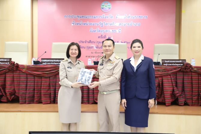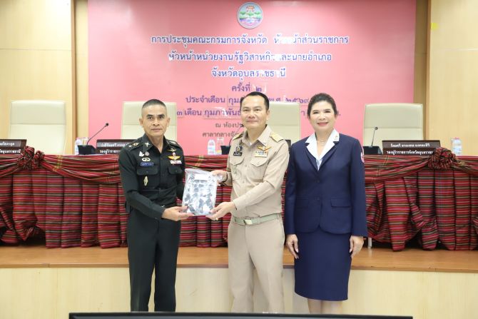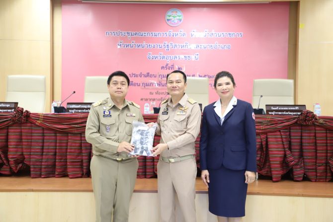 วันที่ 23 กุมภาพันธ์ 2569 นายณรงค์ เทพเสนา ผู้ว่าราชการจังหวัดอุบลราชธานี พร้อมด้วยนางฐิติวราดา เทพเสนา นายกเหล่ากาชาดจังหวัดอุบลราชธานี และแม่บ้านมหาดไทยจังหวัดอุบลราชธานี ร่วมกิจกรรมมอบริบบิ้นไว้อาลัยจาก “ผ้ากาบบัว” ผ้าอัตลักษณ์ประจำจังหวัดอุบลราชธานี ให้แก่ผู้แทนหน่วยงานต่างๆ และชมรมนายอำเภอ