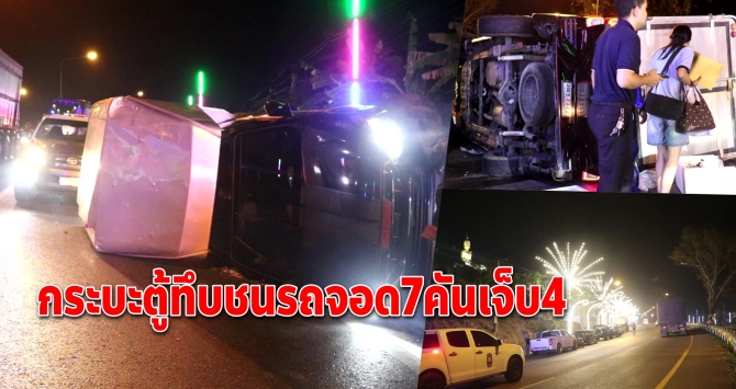 ระทึก! กระบะตู้ทึบพุ่งชนรถจอด 7 คัน เจ็บ 4