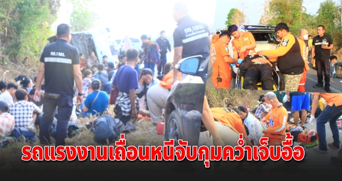 ขบวนการขนแรงงานเถื่อน ซิ่งตีนผีหนีการจับกุม เสียหลักพลิกคว่ำ เจ็บเกลื่อนถนน เกือบ 60 คน มีกว่า 30 คนนอนร้องขอความช่วยเหลือ