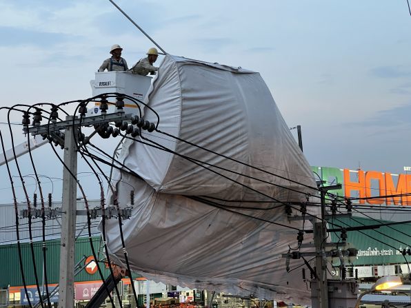 เจ้าหน้าที่การไฟฟ้านครหลวงได้ตัดกระแสไฟ พร้อมนำรถเครนเข้าดำเนินการรื้อถอนเต็นท์ออกจากเสาไฟฟ้าอย่างเร่งด่วน เพื่อป้องกันอันตรายต่อประชาชนและผู้ใช้รถใช้ถนน