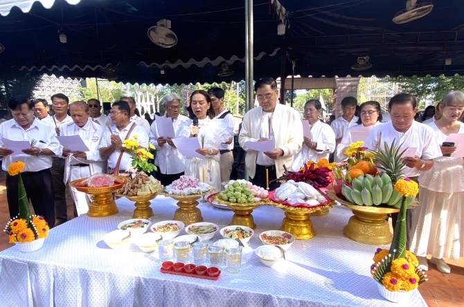 ในพิธีได้รับความเมตตาจาก พระครูเกษมปัญญาคม (หลวงพ่อยิ้ม) ที่ปรึกษาเจ้าคณะภาค 15 เจ้าอาวาสวัดโกสินารายณ์ นำพระสงฆ์รวม 9 รูป เจริญพระพุทธมนต์เพื่อความเป็นสิริมงคล ท่ามกลางบรรยากาศเปี่ยมด้วยศรัทธาและความร่วมแรงร่วมใจของชุมชน
