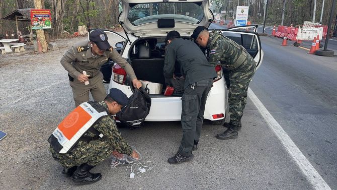 ขณะปฏิบัติหน้าที่ เจ้าหน้าที่พบรถยนต์ต้องสงสัย ยี่ห้อโตโยต้า รุ่นยาริส สีขาว ทะเบียนจังหวัดพระนครศรีอยุธยา ขับมาจากอำเภอเมืองกาญจนบุรี มุ่งหน้าอำเภอทองผาภูมิ จึงส่งสัญญาณให้หยุดรถเพื่อตรวจสอบ