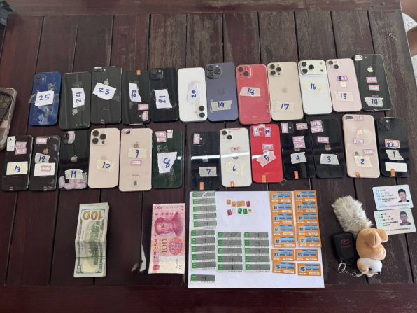 เจ้าหน้าที่ตรวจยึดของกลางหลายรายการ ได้แก่ รถยนต์คันดังกล่าว โทรศัพท์มือถือ iPhone จำนวน 25 เครื่อง (คละสี) ซิมการ์ดโทรศัพท์ 10 ซิม บัตรเติมเงินสด 1 รายการ ธนบัตรสหรัฐอเมริกา ชนิด 100 ดอลลาร์ จำนวน 55 ฉบับ คิดเป็นเงินไทยประมาณ 171,379 บาท และธนบัตรจีนชนิด 100 หยวน จำนวน 1 ฉบับ คิดเป็นเงินไทยประมาณ 452 บาท