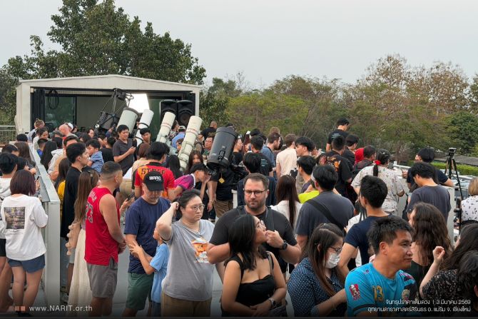 เมื่อเวลา 00.55 น. วันที่ 4 มีนาคม 2569 ผู้สื่อข่าวรายงานจากจังหวัดปราจีนบุรีว่า สถาบันวิจัยดาราศาสตร์แห่งชาติ (องค์การมหาชน) หรือ NARIT เผยภาพปรากฏการณ์ “จันทรุปราคาเต็มดวง” ซึ่งเกิดขึ้นในคืนวันมาฆบูชา วันที่ 3 มีนาคม 2569 โดยดวงจันทร์เต็มดวงปรากฏเป็นสีแดงอิฐ บันทึกภาพจาก หอดูดาวเฉลิมพระเกียรติ 7 รอบ พระชนมพรรษา สงขลา ในช่วงคราสเต็มดวง เวลาประมาณ 18.56 น.