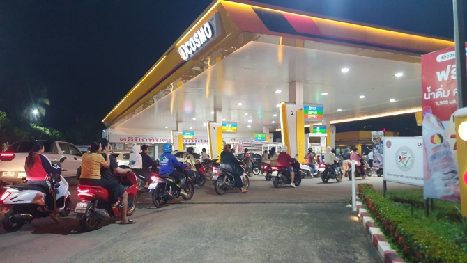 ที่สถานีเติมน้ำมันคอสโม่ แยกขัวแค่ (บิ๊กซี2) เชียงราย ประชาชนต่างพากันมาเติมน้ำมันในรถยนต์ และรถจักรยานยนต์ของตนเอง หลังจากที่สถานีเติมน้ำมันหลายแห่งในเขต เทศบาลนครเชียงรายไม่มีน้ำมันเหลือให้เติมแล้ว โดยพบว่าตลอดทั้งวันมีประชาชนเข้ามาเติมน้ำมันอย่างต่อเนื่อง หลังจากทราบข่าวว่าจะมีการขึ้นราคาน้ำมัน และมีน้ำมันเหลืออีกประมาณ 60 วัน แม้ว่า นายอนุทิน ชาญวีรกูล นายกรัฐมนตรี ได้แถลงข่าวว่าน้ำมันในประเทศมีเพียงพอ และจะมีการตรึงราคาเอาไว้ อีก 7-10 วันก็ตาม