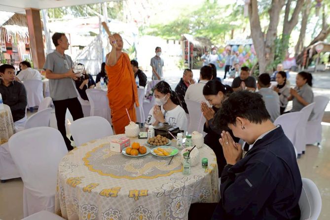 ภายในงานได้รับเกียรติจาก พล.ต.ต.ปรัชญา ทองน้ำวน ผู้บังคับการตำรวจภูธรจังหวัดราชบุรี, นางสาวกุลวดี นพอมรบดี สมาชิกสภาผู้แทนราษฎรจังหวัดราชบุรี รวมถึงหัวหน้าส่วนราชการ ผู้บริหารองค์กรปกครองส่วนท้องถิ่น และผู้นำท้องถิ่นจำนวนมาก เข้าร่วมพิธีทางศาสนาและร่วมรับประทานอาหารกลางวัน ท่ามกลางบรรยากาศที่เป็นกันเอง เต็มไปด้วยรอยยิ้มและความอบอุ่น