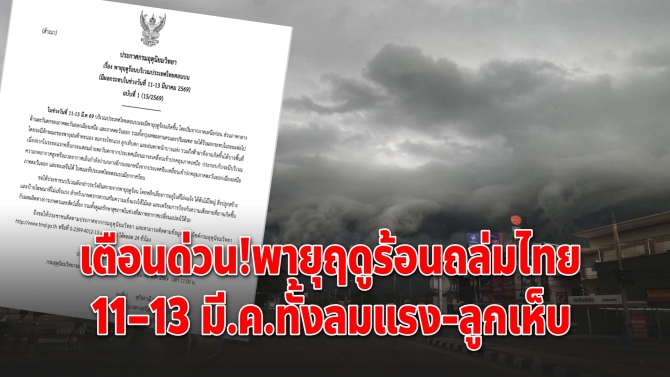 ประกาศกรมอุตุนิยมวิทยา เรื่อง พายุฤดูร้อนบริเวณประเทศไทยตอนบน ฉบับที่ 1 ช่วงวันที่ 11-13 มีนาคม 2569