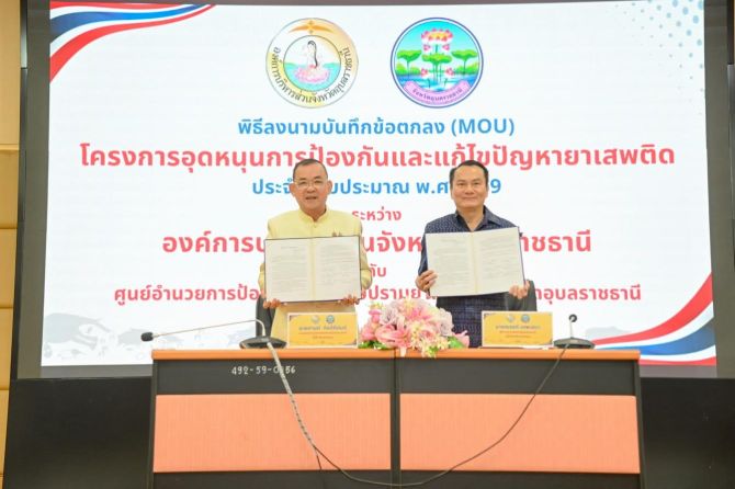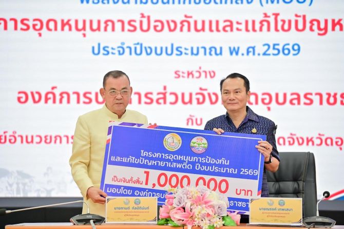 นายก อบจ.อุบลฯ ลงนาม MOU หนุนงบ 1 ล้านบาท เดินหน้าป้องกันและแก้ไขปัญหายาเสพติดฯ