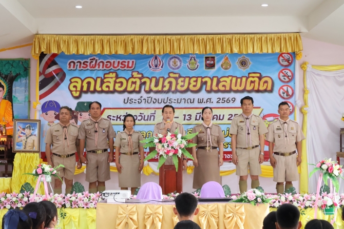 วันที่ 12 มีนาคม 2569 เวลา 09.00 น. ณ ค่ายลูกเสือโรงเรียนบ้านบ่อหิน ต.ไหล่ทุ่ง อ.ตระการพืชผล จ.อุบลราชธานี นายอดุลย์ จันทร์ฝาง ผอ.สพป.อุบลราชธานี เขต 2 เป็นประธานพิธีเปิดการฝึกอบรมลูกเสือต้านภัยยาเสพติด ประจำปี 2569 ซึ่งสำนักงานเขตพื้นที่การศึกษาประถมศึกษาอุบลราชธานี เขต 2 ร่วมกับโรงเรียนขยายโอกาสทางการศึกษาในสังกัด ได้กำหนดจัดฝึกอบรมลูกเสือต้านภัยยาเสพติด ขึ้นในระหว่างวันที่ 12-13 มีนาคม 2569 โดยมีกลุ่มเป้าหมายคือ นักเรียนระดับชั้นมัธยมศึกษาตอนต้น โรงเรียนละ 8-10 คน ประกอบด้วยโรงเรียนในเขตพื้นที่อำเภอตระการพืชผล เเละอำเภอกุดข้าวปุ้น