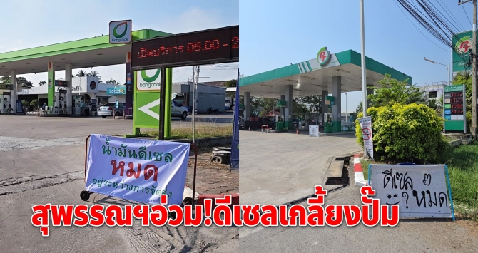 สถานการณ์น้ำมันดีเซลขาดตลาดในพื้นที่จังหวัดสุพรรณบุรีเข้าขั้นวิกฤติ ส่งผลให้ผู้ใช้รถยนต์เครื่องยนต์ดีเซลได้รับความเดือดร้อนอย่างหนัก หลายรายไม่สามารถหาน้ำมันเติมได้จนต้องขับรถตระเวนหาทั่วจังหวัด ขณะที่สถานีบริการน้ำมันหลายแห่งต้องนำป้ายมาติดตั้งบริเวณทางเข้าเพื่อแจ้งลูกค้าว่า "น้ำมันดีเซลหมด อยู่ระหว่างการขนส่ง" สร้างผลกระทบเป็นวงกว้างทั้งกลุ่มรถบรรทุก ขนส่งสินค้า รถเกี่ยวข้าว เกษตรกร และผู้ประกอบการต่างๆ