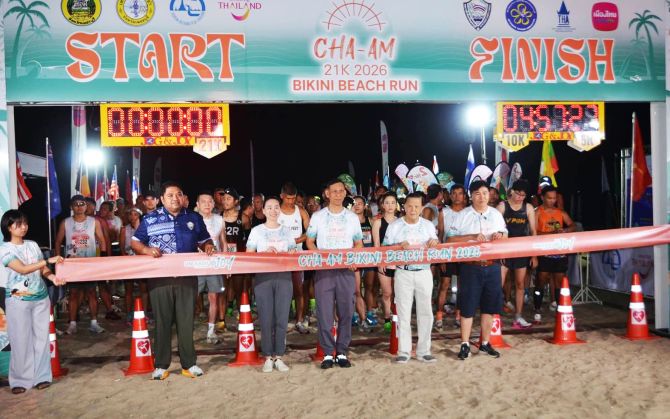 เมื่อวันที่ 15 มีนาคม 2569 ณ ชายหาดหน้าโรงแรมลองบีชชะอำ จ.เพชรบุรี นายพลกฤต พวงวลัยสิน ปลัดจังหวัดเพชรบุรี ให้เกียรติเป็นประธานในพิธีปล่อยตัวและมอบรางวัลแก่ผู้ชนะการแข่งขันวิ่งรายการ ‘CHA-AM BIKINI BEACH RUN 2026’ (ชะอำ บิกินี บีชรัน 2026) ครั้งที่ 17 โดยมี นางดวงใจ คุ้มสะอาด ผอ.ททท.สำนักงานเพชรบุรี และ นายวสันต์ กิตติกุล นายกสมาคมโรงแรมไทยภาคตะวันตก พร้อมคณะผู้บริหารและแขกผู้มีเกียรติร่วมให้การต้อนรับ