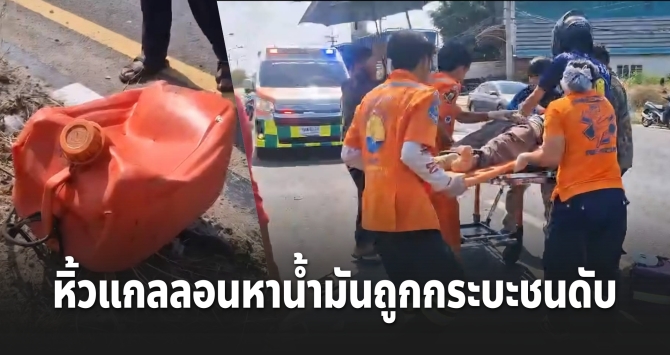 หิ้วแกลลอนหาน้ำมันเติมรถไถ ถูกกระบะชนดับ