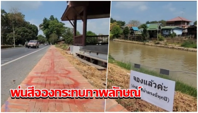 วุ่นก่อนสงกรานต์! มือดีพ่นสเปรย์ "จองแล้ว" ยาวกว่า 300 เมตร คูคลองเมือง ทำสกปรกไร้ระเบียบ