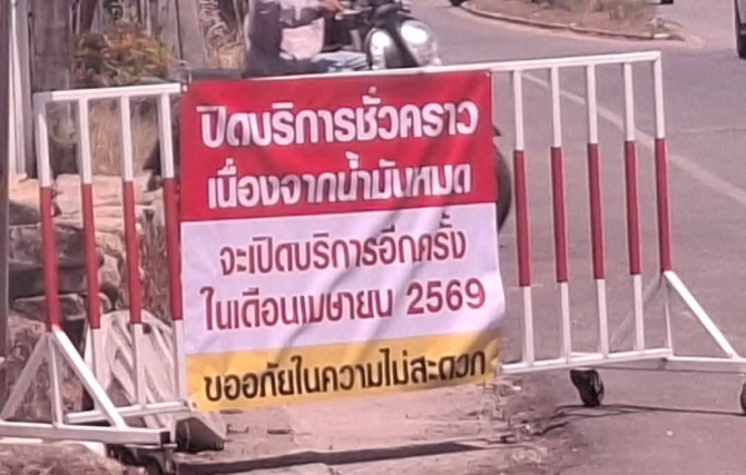 - ส่อวิกฤต! ปั๊มน้ำมันในอำเภอแม่สอดปิดให้บริการชั่วคราว เนื่องจากน้ำมันหมด 21 มี.ค. 2569
