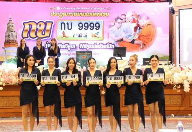 นายสยาม ภู่ทรัพย์สิน ขนส่งจังหวัดกาฬสินธุ์ เปิดเผยว่า การประมูลครั้งนี้มีผู้ลงทะเบียนล่วงหน้ากว่า 200 ราย ความพิเศษอยู่ที่แผ่นป้ายทุกใบผ่านพิธีอธิษฐานจิตปลุกเสกโดย พระเทพวัชรธรรมโสภณ หรือ หลวงปู่ศิลา สิริจันโท เจ้าอาวาสวัดพระธาตุหมื่นหิน เพื่อความเป็นสิริมงคลแก่ผู้ครอบครอง ตัวป้ายยังเป็นลายกราฟิกสะท้อนอัตลักษณ์เมืองกาฬสินธุ์ ทั้งผ้าไหมแพรวา โปงลาง และไดโนเสาร์