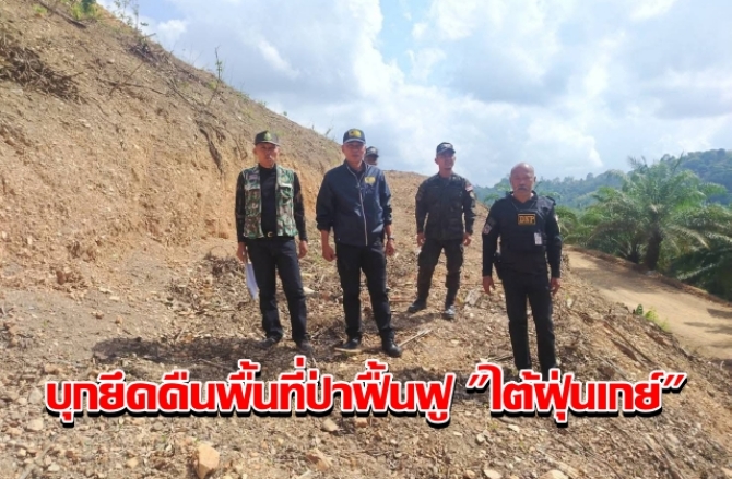 สปป.4 บุกยึดคืนพื้นที่ป่าฟื้นฟู "ไต้ฝุ่นเกย์" กลางท่าแซะ ลอบใช้แบคโฮถางเรียบกว่า 1 ไร่ครึ่ง