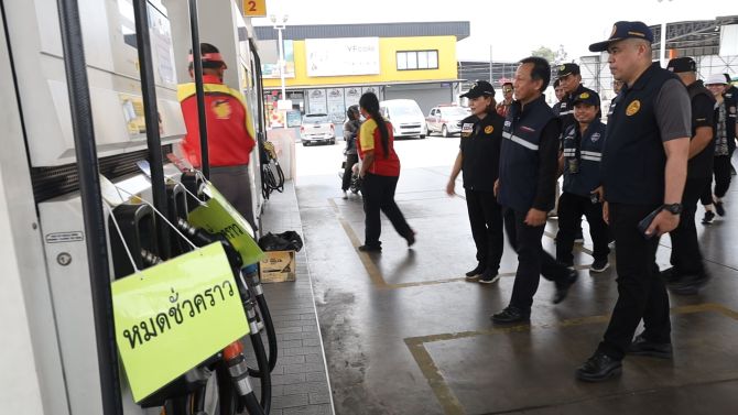 จากการสุ่มตรวจปั๊มน้ำมันแบรนด์ดัง 3 แห่ง พบว่าภาพรวมยังคงจำหน่ายเป็นปกติ ไม่พบพฤติกรรมการกักตุนเพื่อเก็งกำไร ส่วนกรณีที่มีบางสถานีไม่มีน้ำมันจำหน่ายชั่วคราว ตรวจสอบแล้วพบว่าเกิดจากความล่าช้าในกระบวนการขนส่ง ซึ่งอยู่ระหว่างรอดำเนินการ ไม่ได้เกิดจากความเจตนาปฏิเสธการจำหน่ายน้ำมันแต่อย่างใด