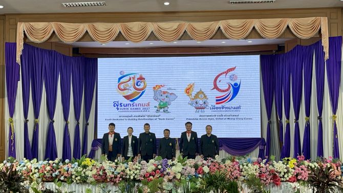 จังหวัดสุรินทร์เปิดตัวสัญลักษณ์ประจำการแข่งขันกีฬาเยาวชนแห่งชาติ ครั้งที่ 42 “สุรินทร์เกมส์” และกีฬาอาวุโสแห่งชาติ ครั้งที่ 9 “เมืองช้างเกมส์” พ.ศ. 2570 อย่างเป็นทางการ พร้อมประกาศผลผู้ชนะการประกวดครบทุกประเภท