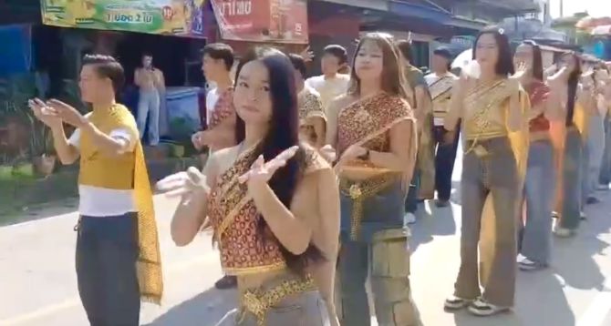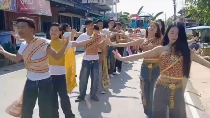 ไฮไลต์สำคัญอยู่ที่ขบวนหญิงสาวกว่า 30 คน พร้อมใจนุ่งกางเกงยีนส์ห่มสไบ ผสานวัฒนธรรมพื้นถิ่นเข้ากับความทันสมัยได้อย่างลงตัว พร้อมออกลีลาฟ้อนรำอย่างสนุกสนานตามจังหวะเพลง “คิดถึงทุ่งลุยลาย” สร้างรอยยิ้มและความประทับใจตลอดเส้นทาง