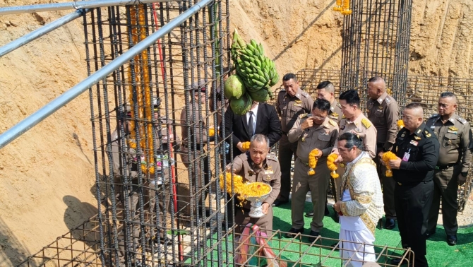 ตำรวจภูธรภาค 5 ถือฤกษ์มงคล "ภูมิปาโลฤกษ์" ยกเสาเอกอาคารที่ทำการแห่งใหม่ที่สันทราย