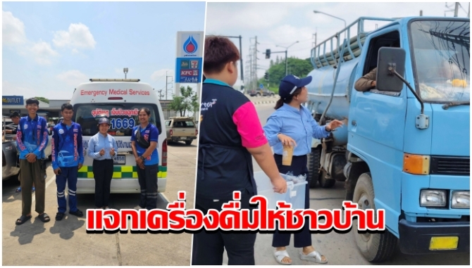 ชื่มชม! เจ้าของปั๊มน้ำมันแจกเครื่องดื่มให้ชาวบ้านมารอซื้อน้ำมัน